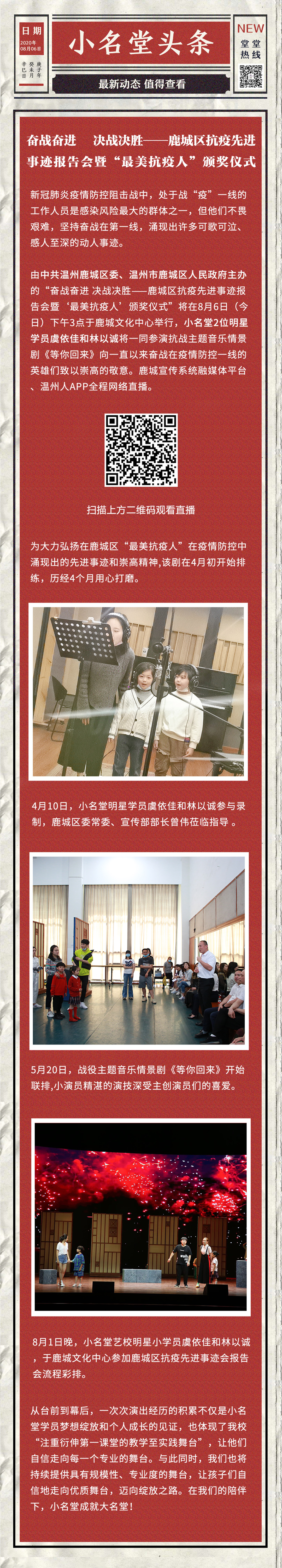 小名堂头条学员被温州艺术学校录取喜报