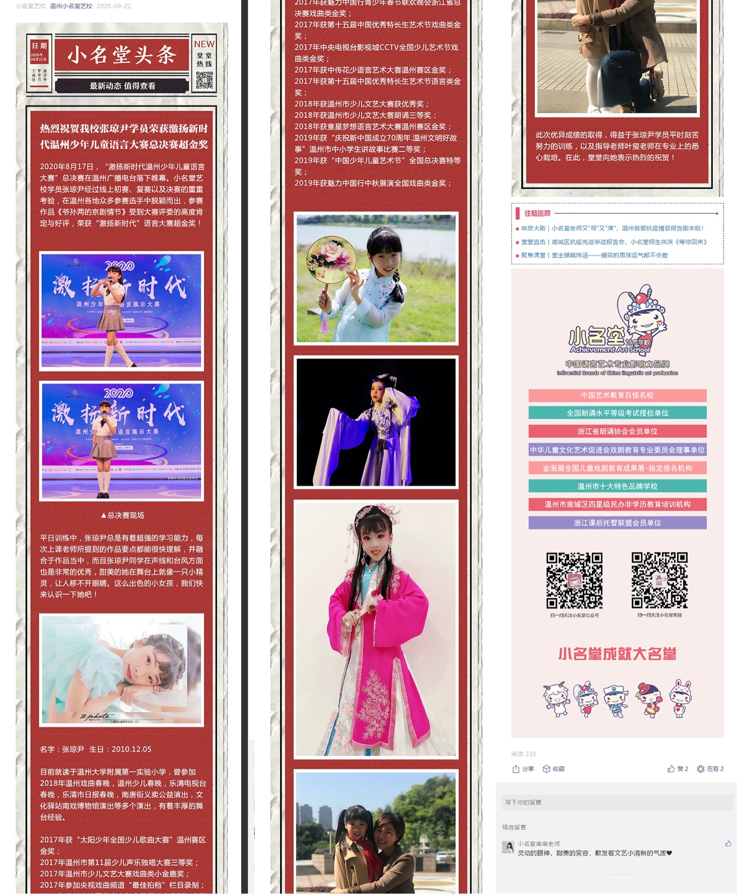 喜讯丨小名堂艺校张琼尹学员“激扬新时代”语言决赛超金奖